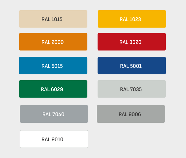 - Може да изберете различен цвят на вратите по RAL от приложения каталог.